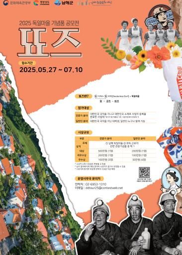 [경남도민뉴스=김부경 기자] 남해군 관광문화재단은 2025 독일마을 기념품 공모전 ’뚀즈‘를 개최한다고 밝혔다.