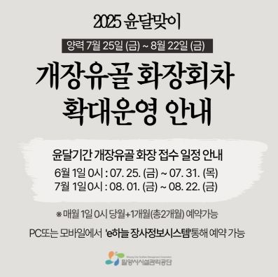 개장유골 화장 예약은 6월 1일부터‘e하늘 장사정보시스템’을 통해 온라인 접수만 가능하며, 사전 예약이 필수다.