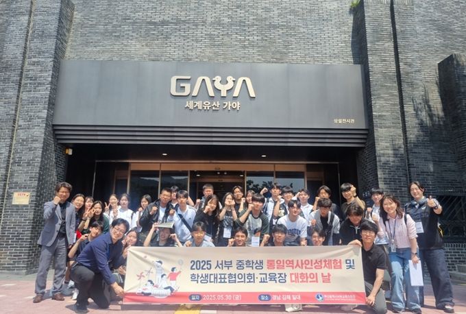 [경남도민뉴스=김채연 기자] 부산광역시서부교육지원청은 지난 30일 경남 김해에서 서부 관내 중학생 대표 32명을 대상으로 ‘서부 중학생 통일역사인성체험 및 학생대표협의회·교육장 대화의 날’을 운영했다.