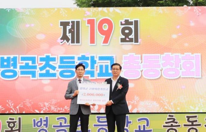[경남도민뉴스=장광동 기자] 함양군 병곡초등학교 총동창회는 지난 5월 31일 병곡면 등구정 체육공원에서 열린 ‘제19회 병곡초등학교 총동창회’ 개회식에서 고향사랑기부금 200만 원을 함양군에 기탁하며 남다른 고향 사랑을 실천했다.