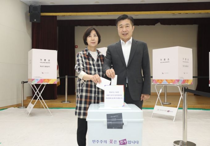 [경남도민뉴스=김완호 기자] 전성수 서초구청장이 제21대 대통령선거 본투표 날인 3일 오전 6시 30분, 배우자 정현주 여사와 함께 양재2동주민센터에 설치된 양재2동 제1투표소를 찾아 귀중한 한 표를 행사했다.