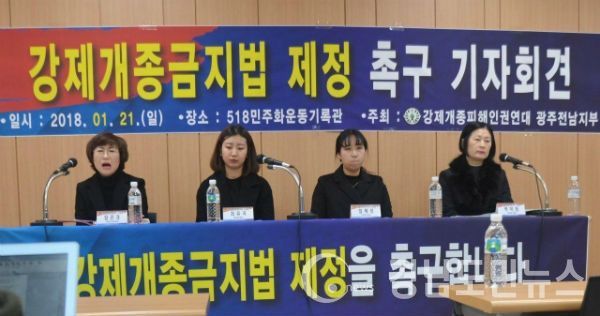 기자회견에서 강피연 전남지부 대표는 “개종 피해자들이 2003년 이후 현재까지 1000명이 넘고 매년 150명 이상이 발생하고 있다. 종교의 자유가 있는 대한민국에서 살인까지 유발하는 강제개종은 사라져야 한다”며 강제개종 금지법 촉구를 주장했다.