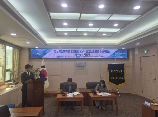 [경남도민뉴스=구인애 기자] 경상남도 동물위생시험소는 4일 오후 2시 경상국립대학교에서 연구 종사자 안전 역량 강화 및 연구실 안전관리 문화 확산을 위해 경상국립대학교 안전관리본부(본부장 고필옥)와 업무협약을 체결했다고 밝혔다.