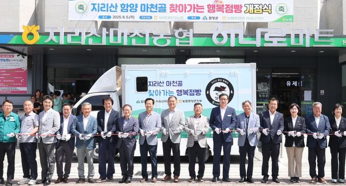 함양군과 지리산마천농협(조합장 조원래)이 협력해 추진하는 ‘찾아가는 행복점빵’이 6월 5일 지리산마천농협에서 개점식을 열고 힘찬 출발을 알렸다.