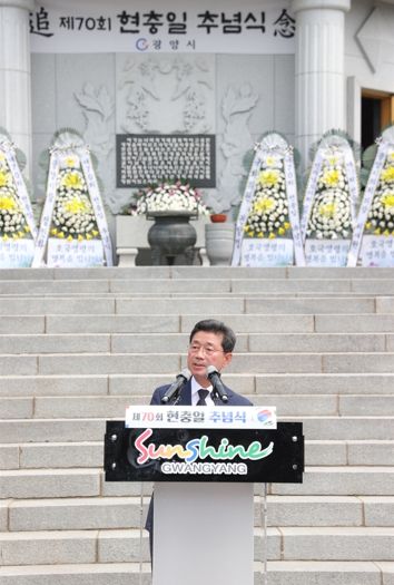 [경남도민뉴스=최인태 기자] 광양시는 6월 6일 ‘제70회 현충일’을 맞아 현충탑 광장에서 순국선열과 호국영령의 명복을 빌고, 국가를 위해 헌신하신 분들의 숭고한 희생과 공헌을 기리기 위한 추념식을 개최했다고 밝혔다.