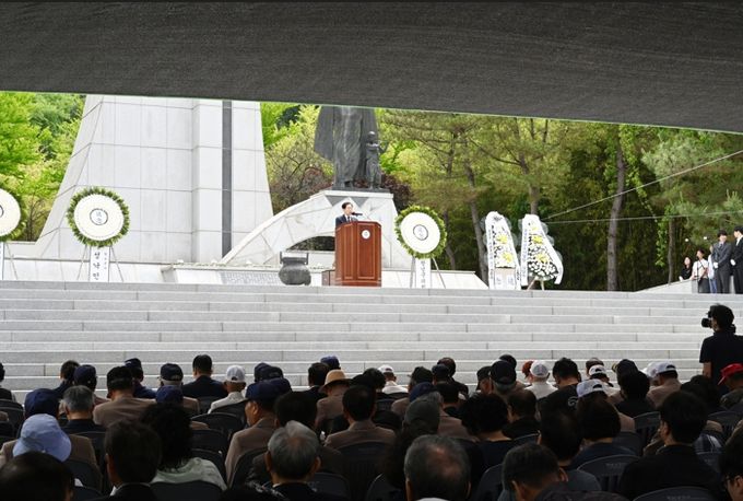 추념식은 국민의례를 시작으로 오전 10시 정각 전국 동시 사이렌 취명에 맞춰 1분간의 묵념, 헌화와 분향, 추념사, 헌시 낭송, 현충의 노래 제창 순으로 진행됐다.