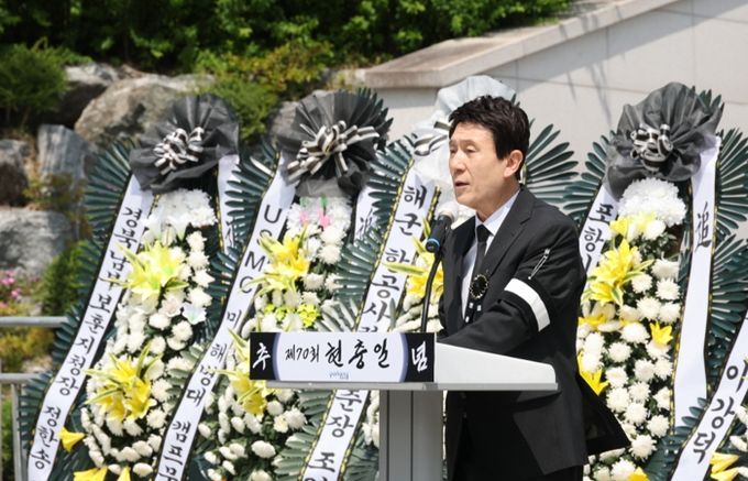 이어 헌화 및 분향, 이강덕 시장의 추념사, 헌시 낭송, 위령무, 현충일 노래 합창 등으로 경건한 분위기 속에 추모행사가 진행됐다.