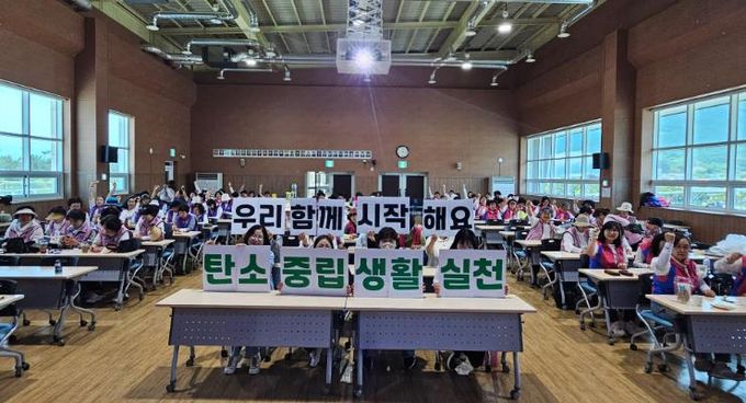 농촌여성리더로 구성된 연합회는 이날 동부면 산촌습지에서 환경정화 활동을 진행한 후, 농업기술센터의 탄소중립 실천 교육에 참석했다.