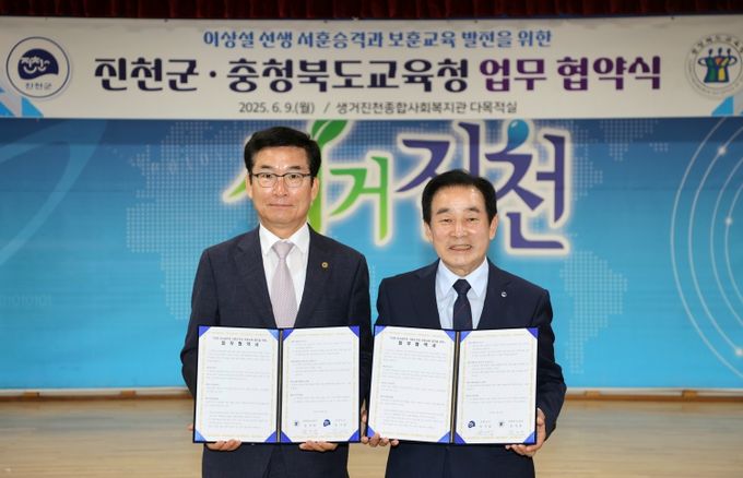 [경남도민뉴스=박만수 기자] 충청북도교육청은 9일, 생거진천종합사회복지관 다목적실에서 보재 이상설 선생의 합당한 서훈 승격 추진과 지역 내 보훈 교육을 위한 협력 체계 구축을 위해 진천군(군수 송기섭)과 업무협약을 체결했다.