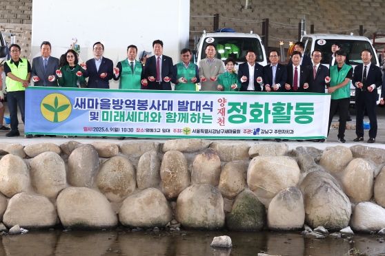[경남도민뉴스=김완호 기자] 꿈이 모이는 도시, 미래를 그리는 강남구가 강남구 새마을회(지회장 이종선)와 함께 6월 9일 양재천 영동3교에서 ‘2025년 새마을 방역봉사대 발대식’과 ‘어린이와 함께하는 양재천 정화행사’를 열었다.