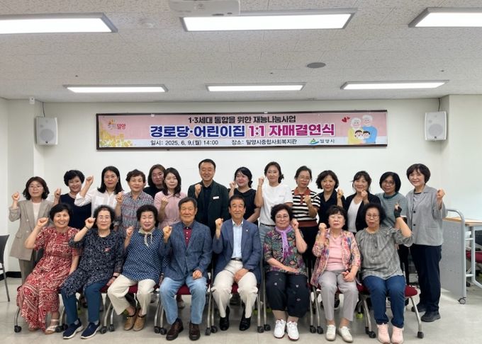 [경남도민뉴스=나희준 기자] 밀양시는 9일 밀양시종합사회복지관에서‘1·3세대 통합을 위한 재능 나눔 사업’추진을 위한 경로당과 어린이집 1:1 자매결연식을 개최했다고 밝혔다.