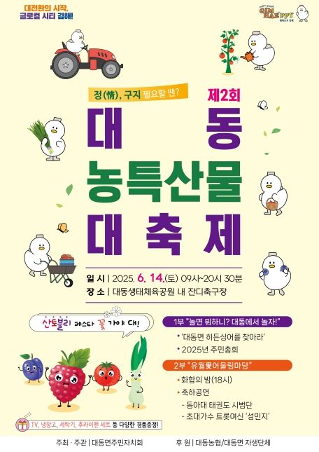 박상병 주민자치회장은 “주민들과 함께 오랜 시간 고민해서 준비했다. 많이 오셔서 정겨운 추억을 만들고 대동의 매력을 온전히 느끼시길 바란다”고 말했다.