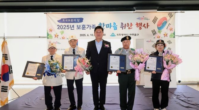 [경남도민뉴스=김용욱 기자] 인천 미추홀구는 호국보훈의 달을 맞아 10일 주안역 그랜드하우스에서 광복회 미추홀구지회를 비롯한 8개 보훈단체의 국가유공자와 보훈 가족 240여 명을 초청해 ‘보훈 가족 한마음 위안 행사’를 개최했다.