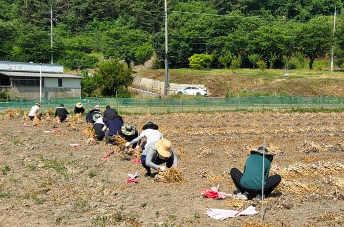 이날 참여한 직원들은 농가에 실질적인 도움이 되기를 바라는 마음으로 이른 아침부터 무더위 속에서 마늘을 캐고 운반하는 등 수확철 적기 작업에 힘을 보탰다.