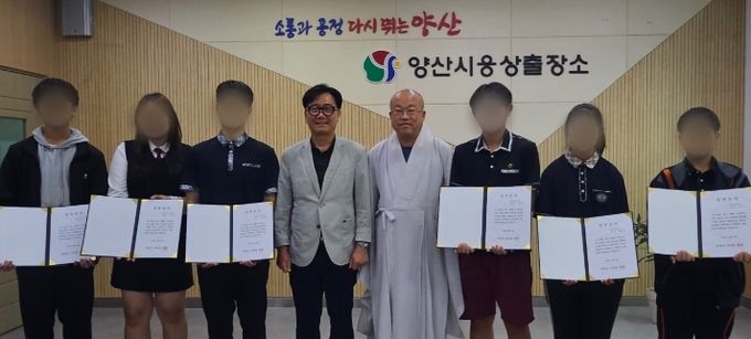 미타암은 지난 10일 웅상소재 중고등학교 7개교·35명에게 장학증서를 수여하고, 총 1,350만원의 장학금을 전달했다. 각 학교장으로부터 추천받은 고등학생 15명, 중학생 20명이 장학생으로 선정됐으며 중학생은 30만원, 고등학생은 50만원의 장학금이 지원된다.