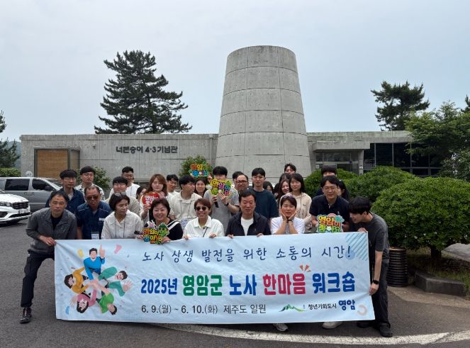 [경남도민뉴스= 기자] 영암군이 9~10일 제주도에서 집행부, 노조 운영위, 대의원 등 32명이 참여하는 ‘노사 상생 및 상호발전 직원 연수 프로그램’을 운영했다.