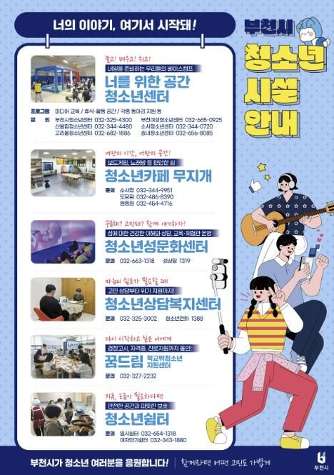 [경남도민뉴스= 기자] 부천시는 ‘큐알(QR)코드로 한눈에! 부천 청소년시설 올인원 프로젝트’를 본격 추진한다고 11일 밝혔다. 동 행정복지센터에서 청소년증 또는 주민등록증을 발급받는 청소년에게 큐알(QR)코드가 삽입된 홍보물을 배포해, 다양한 청소년시설 정보를 간편하게 제공하는 것이 핵심이다.