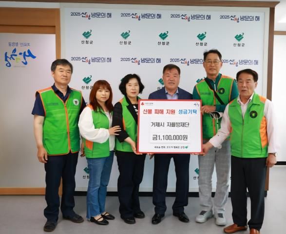 [경남도민뉴스=김부경 기자] 거제시 자율방재단은 산청지역에서 발생한 대형 산불피해 주민들을 돕기 위한 성금 110만원을 지난 10일 산청군에 전달했다고 밝혔다.