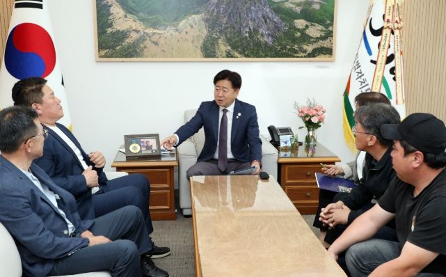 오영훈 지사는 11일 오전 도청 집무실에서 김병수 동복리장을 비롯한 동복리 마을회 관계자들과 면담을 갖고 앞으로의 협력방안을 논의했다.