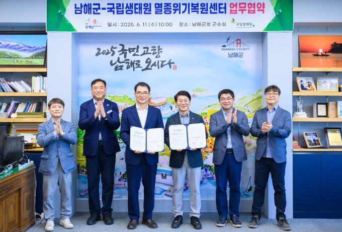 [경남도민뉴스=김부경 기자] 남해군과 국립생태원 멸종위기종복원센터는 11일 멸종위기 야생생물 보호와 생물다양성 증진을 위한 업무협약(MOU)을 체결했다.
