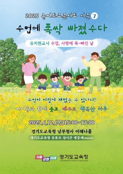 [경남도민뉴스=김동규 기자] 경기도교육청이 12일 남부청사에서 ‘우리들의 수다 시리즈-수업에 폭싹 빠졌수다’를 주제로 ‘2025 놀이토크 콘서트 시즌7’을 개최한다.