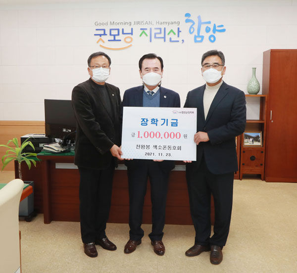 [경남도민뉴스] 함양군의 색소폰 연주 동호회인 천왕봉 색소폰동호회에서 지난 23일 오후 함양군에 인재육성장학금 100만원을 기탁하였다.