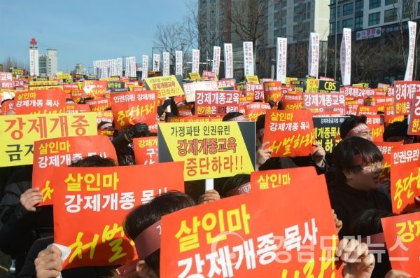 이번 궐기대회는 지난 9일 전남 화순의 한 펜션에서 감금된 채 개종을 강요당하던 故 구지인 씨가 부모에 의해 죽임을 당한 사건이 발생한 데 따른 것이다.