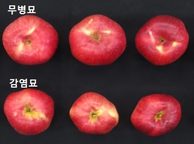 무병묘의 실질적인 효과 입증을 위해 실제 재배농가를 추적 조사한 결과, 사과의 경우 무병묘가 감염묘에 비해 과실의 수량(약 37%↑), 상품과율(약 41%↑), 착색(약 47%↑) 등에서 더 우수한 품질을 보였으며, 무병묘를 재배하는 중에 바이러스에 다시 감염되지 않아 무병화 효과가 안정적으로 유지됐다.