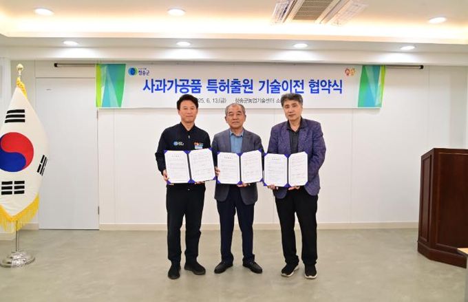 윤경희 청송군수는 “이번 기술이전은 지역 농산물의 가치를 높이고, 청송만의 특색 있는 식품 산업을 만들어가는 중요한 출발점”이라며, “앞으로도 지역 대학 및 기업과의 협력을 통해 가공 기술을 지속적으로 개발하고, 실질적인 농가 소득 향상으로 이어질 수 있도록 최선을 다하겠다.”라고 밝혔다.