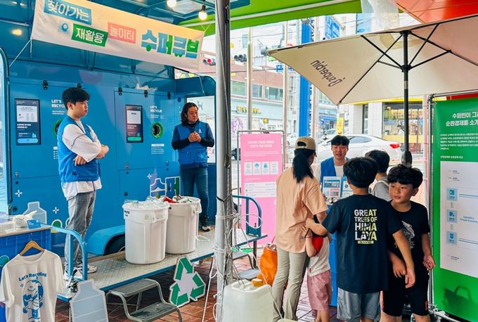 이와 함께 군 환경위생과는 인공지능 재활용 놀이터 ‘수퍼큐브’ 부스를 운영하여 투명 페트병 분리배출 체험과 함께 고품질 재생 원료가 만들어지는 과정을 제품과 영상을 통해 직접 확인할 수 있도록 했다.