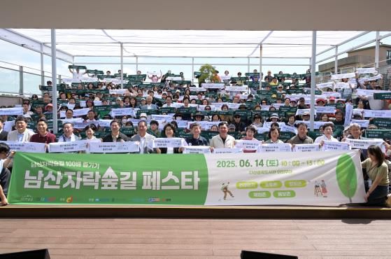 페스타는 다산성곽도서관 야외무대에서 열린 기념식으로 시작했다. 무대에 오른 김길성 중구청장은 “민선8기 3년간 가장 높은 주민 만족도를 기록한 사업이 바로 남산자락숲길”이라며 “산림청 녹색자금 공모사업 등 외부재원을 적극 유치해 조성에 힘썼다”라고 말했다.