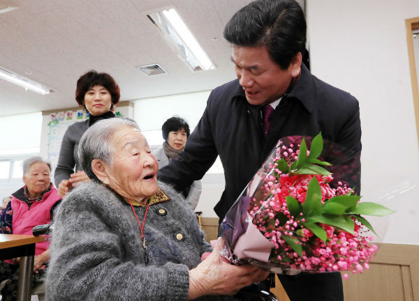 29일 허기도 산청군수는 산청읍 소재 한 노인복지센터에서 지내고 있는 박 감독의 어머니를 찾았다.