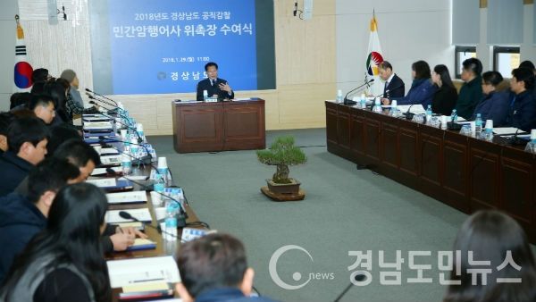 (경남도/이형섭 기자) = 경남도는 29일 도정회의실에서 한경호 도지사 권한대행이 참석한 가운데 ‘2018년도 경남도 공직감찰 민간암행어사 위촉식’을 개최했다.