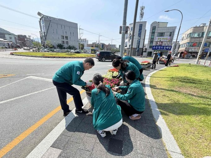 이날 행정복지센터 직원과 공공근로자 등 20여 명이 참여해 유동 인구가 많은 신촌오거리, 국립식량과학원사거리, 주요 회전교차로 등에 베고니아를 식재해 싱그럽고 쾌적한 환경을 조성했다.