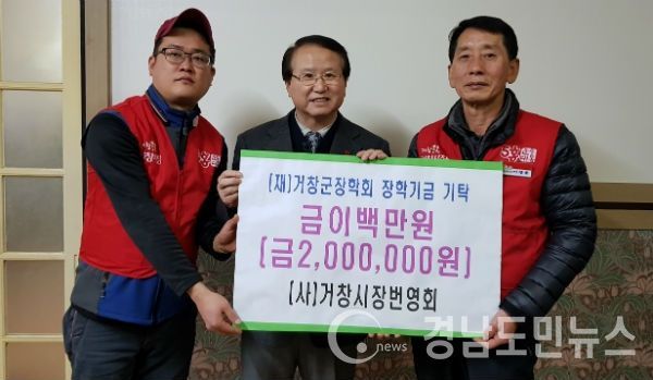 (거창/최병일) = (사)거창시장번영회(회장 이정용)가 지난 27일 (재)거창군장학회에 장학금 200만 원을 기탁했다.