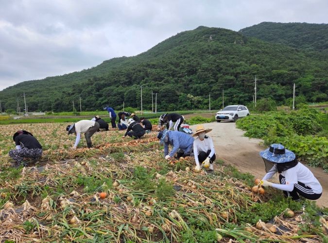 이번 봉사활동은 상하수도사업소 직원 14명이 참여해 고령화와 일손 부족으로 어려움을 겪고 있는 농가의 양파 수확을 도왔다.