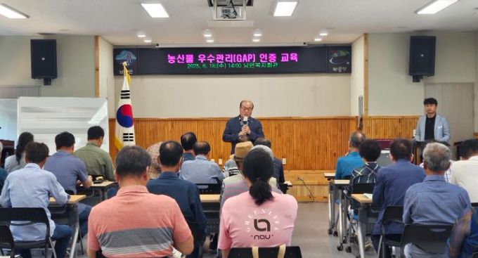 이번 교육은 남면 단호박작목반의 요청으로 진행됐으며, GAP 인증 갱신·신규 희망 농업인 50여 명이 참여했다.