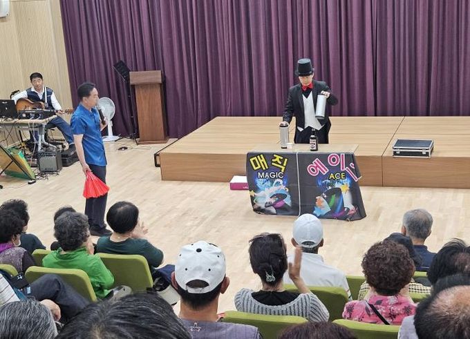 [경남도민뉴스=최재경 기자] 울산 중구에서 운영하는 종갓집 공공실버주택이 현대자동차 평일봉사단과 협력해 6월 19일 오전 10시 30분 종갓집노인복지관 대강당에서 어르신들을 위한 마술공연을 개최했다.