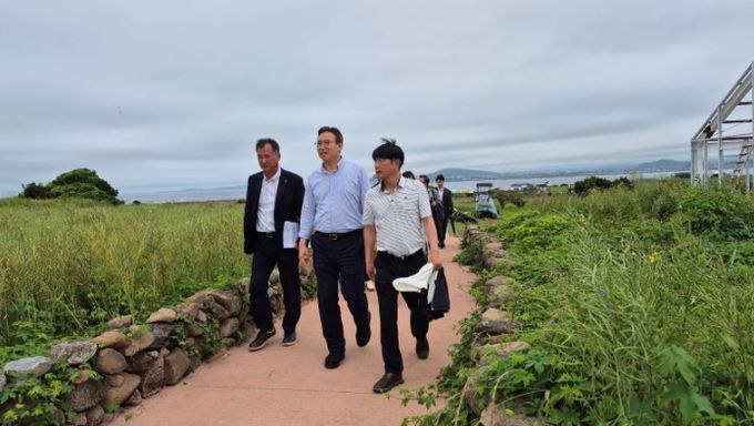 지난 4월 완료된 마을 돌담 정비 현장과 현재 진행 중인 청보리 도정공장 리모델링 현장, 다목적 창고 신축 현장 등을 마을대표와 함께 살피고 지역주민 의견이 사업에 잘 반영되도록 담당부서에 당부했다.