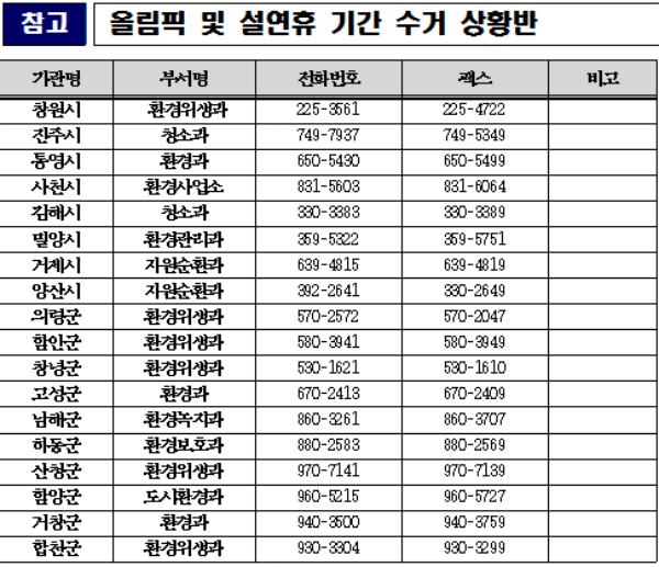 한편, 설 연휴기간 동안 쓰레기 수거일정은 각 시·군 청소관련부서를 통해 확인할 수 있다.