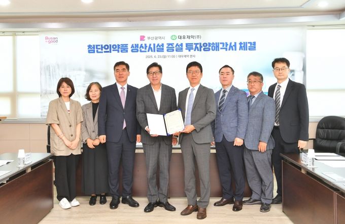 시는 23일 오전 10시 40분 대우제약 본사(사하구 소재)에서 바이오·제약기업인 대우제약㈜과 부산공장 증설을 위한 투자 양해각서를 체결한다고 밝혔다.