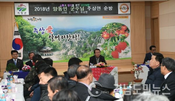 (거창/김은경 기자) = 거창군(군수 양동인)은 1일 주상면을 시작으로 7일까지 5일간 12개 읍면을 순회하며 군민의 다양한 의견을 수렴하기 위한 2018년 읍면 연두순방에 나선다고 밝혔다.