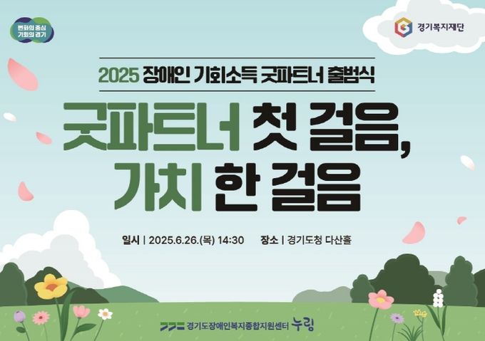 경기도는 26일 도청 다산홀에서 ‘2025년 경기도 장애인 기회소득 굿파트너 출범식’을 개최하고, 장애인 기회소득 사업에 성실히 참여해 긍정적인 변화를 실천한 A씨 등 100명의 도민을 ‘굿파트너’로 위촉했다.