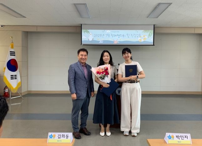 [경남도민뉴스=박만수 기자] 단양교육지원청은 2025년 2분기 청렴 유공 표창 대상자로 행정과 오지윤 주무관을, 친절 유공 표창 대상자로 대가초등학교 안옥순 조리실무사, 상진초등학교 한희 교무실무사를 각각 선정했다.