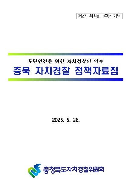 [경남도민뉴스=박만수 기자] 충청북도자치경찰위원회는 제2기 위원회 출범 1주년에 즈음하여 '도민안전을 위한 충북 자치경찰 정책자료집'을 발간·배포했다고 밝혔다.