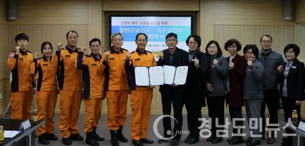 (합천/권연홍 기자) = 합천군보건소(소장 안명기)와 합천소방서(서장 구본근)는 심정지 환자 소생률 향상 및 응급상황 조기 대응을 위한 협력체계 구축 협약식을 지난 6일 보건소 회의실에서 가지고 앞으로 긴밀히 협력하기로 했다.