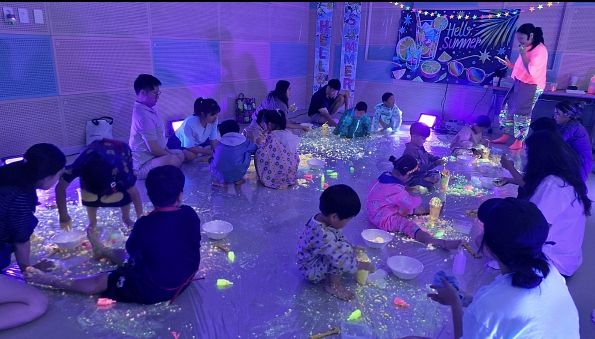 이번 프로그램은 무더운 여름철 실내에서 아이들의 오감을 자극하고 창의력을 키울 수 있도록 기획된 특별 체험활동으로, 참여 영유아들은 안전한 야광물감을 직접 만지고 자유롭게 표현하며 상상력과 감성을 기를 수 있는 시간을 가졌다.