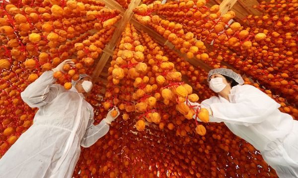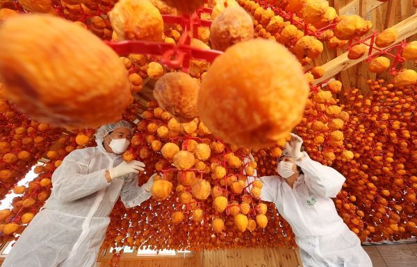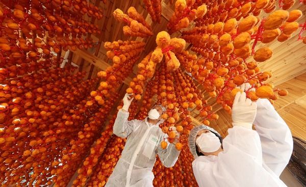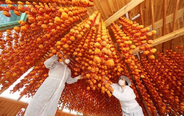 [경남도민뉴스] 29일 경남 함양군 병곡면 곶감건조대에서 김철수 부부가 겨울햇살에 달콤하고 쫀득하게 잘 익어가는 곶감을 손질히고 있다. 지리산 함양곶감은 내달 9일 안의농협 서하지점 곶감경매장에서 초매식을 갖고 본격 출하된다.