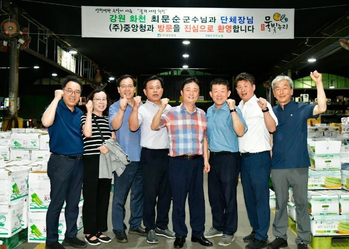 최 군수는 지난 8일 밤, 화천산 농산물 최대 유통 시장인 서울시 가락동 농수산물 도매시장을 찾아 지역 농산물 홍보에 팔을 걷어 붙였다.