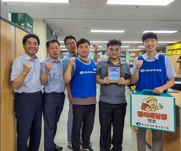 [경남도민뉴스=김병현 기자] 창녕군공무원노동조합(위원장 장정석)은 고생하는 조합원 선발 사업의 일환으로 2025년 2분기 ‘행복을 쏩니다’주인공에 건설교통과 김민재 주무관을 선정하고 행복배달통을 전달했다고 17일 밝혔다.